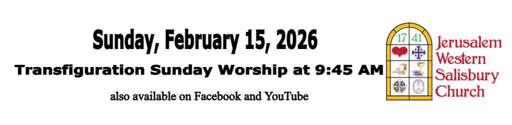 Jerusalem Western Salisbury Church is a congregation which seeks to live out the promise and hope of the Gospel. We aim to be engaged with the world around us, while providing a place of comfort and solace which sustains and enriches the lives of those who gather here. Our mission is to share the love we know from God through Jesus Christ with those we see every week - and those we will never know. We are a congregation which strives, with God's help, to live out the goals of our Vision Statement -- To Welcome All People, Share Christ’s Love for One Another and Help to Make Christ Visible in Daily Life.